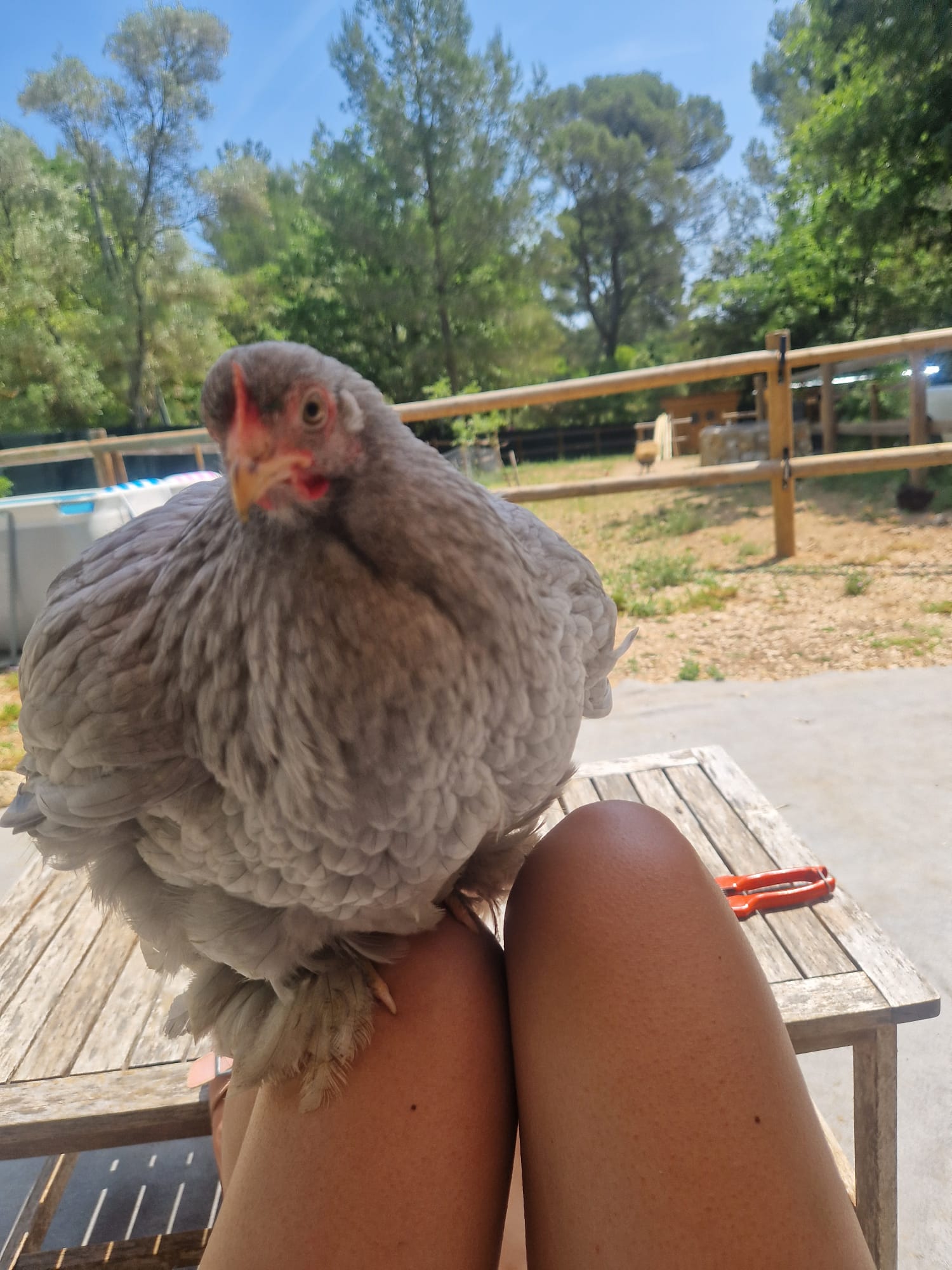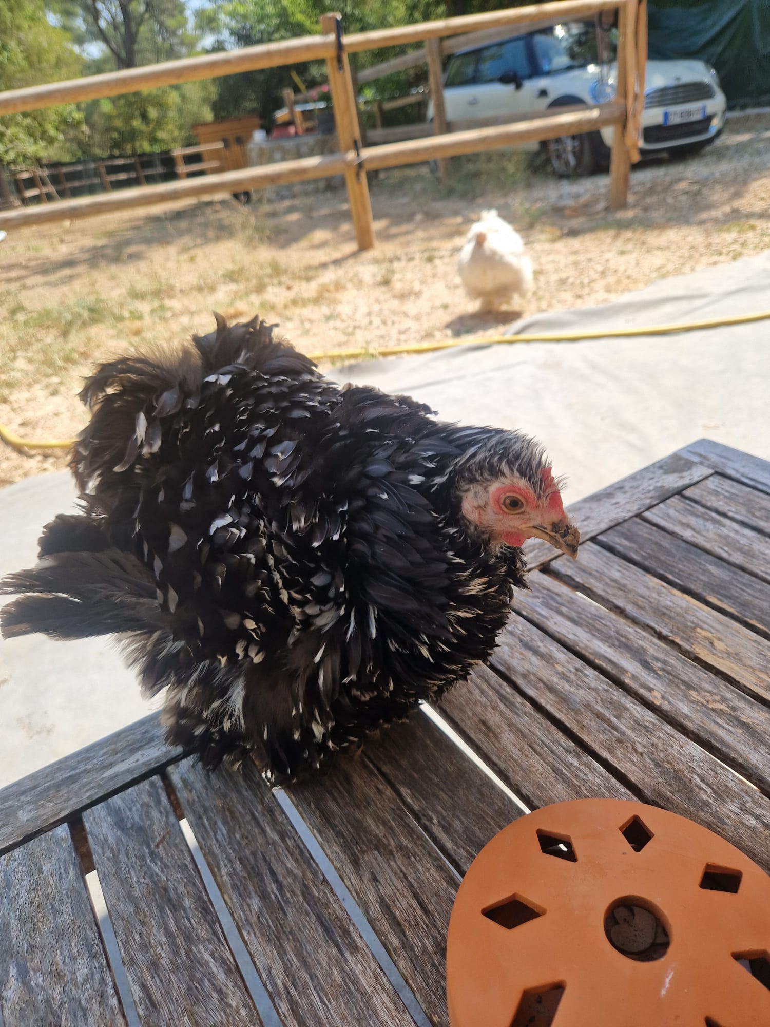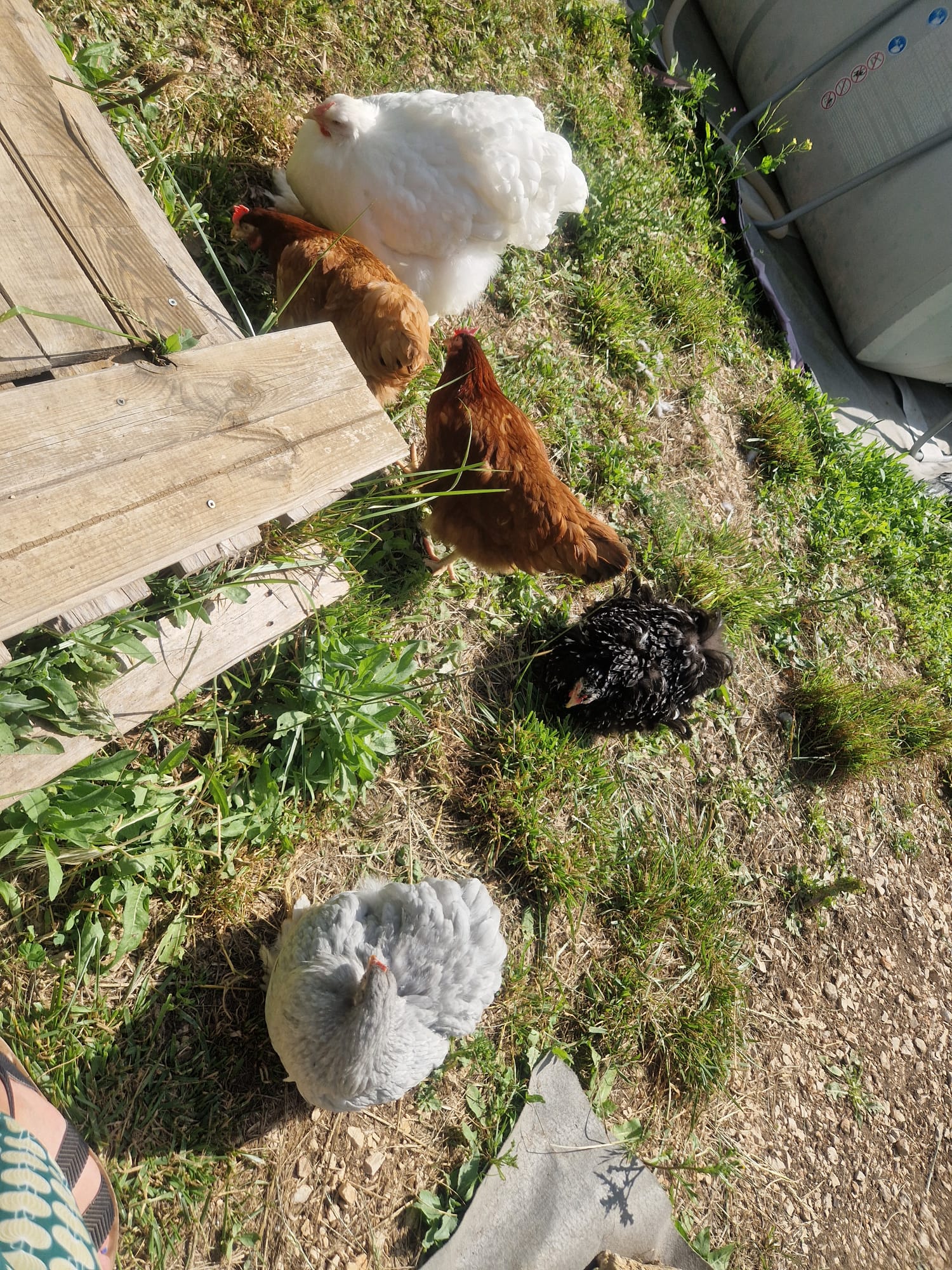 Nos cinq poules, toujours en mouvement, captive les enfants comme les adultes.