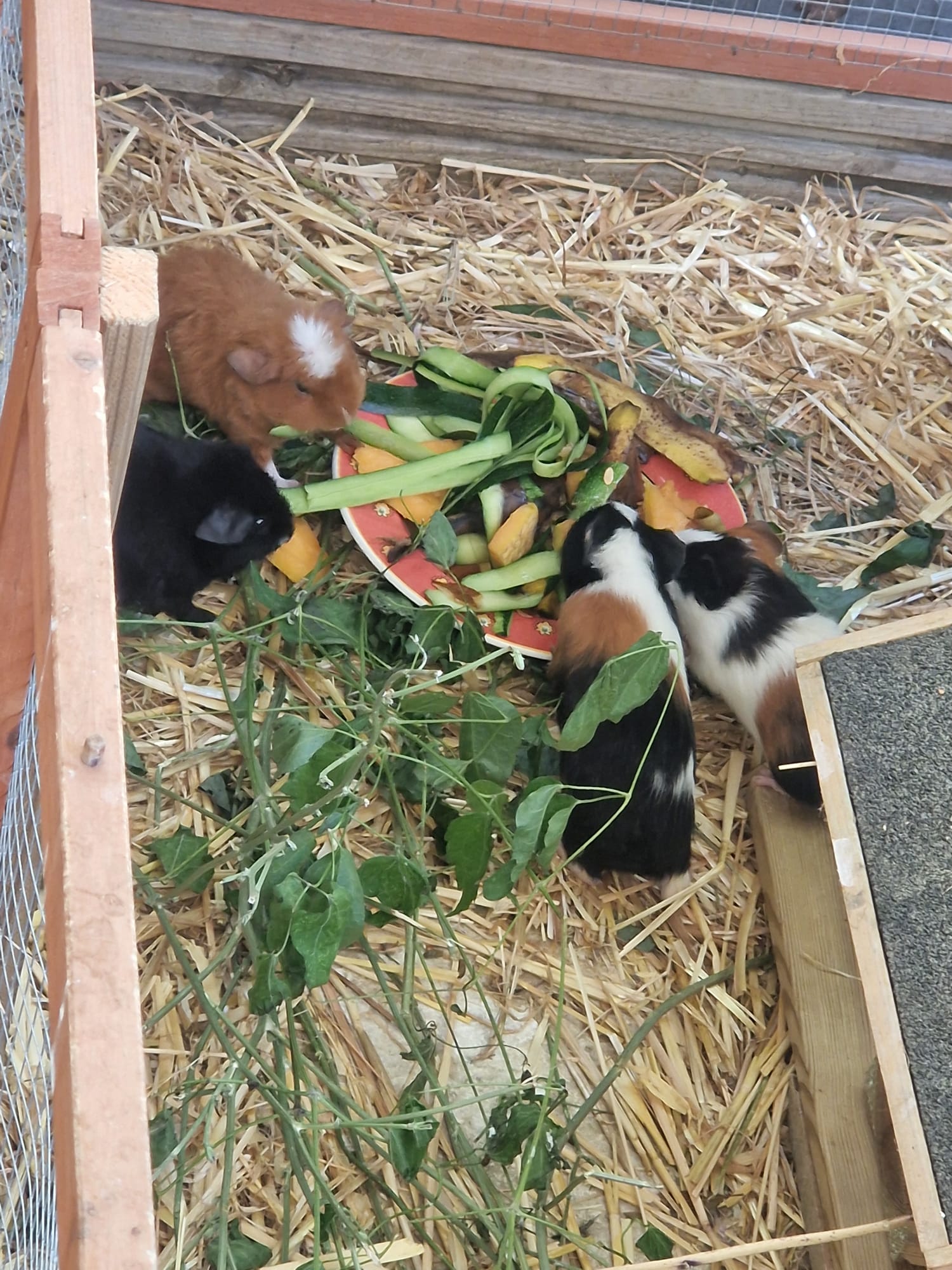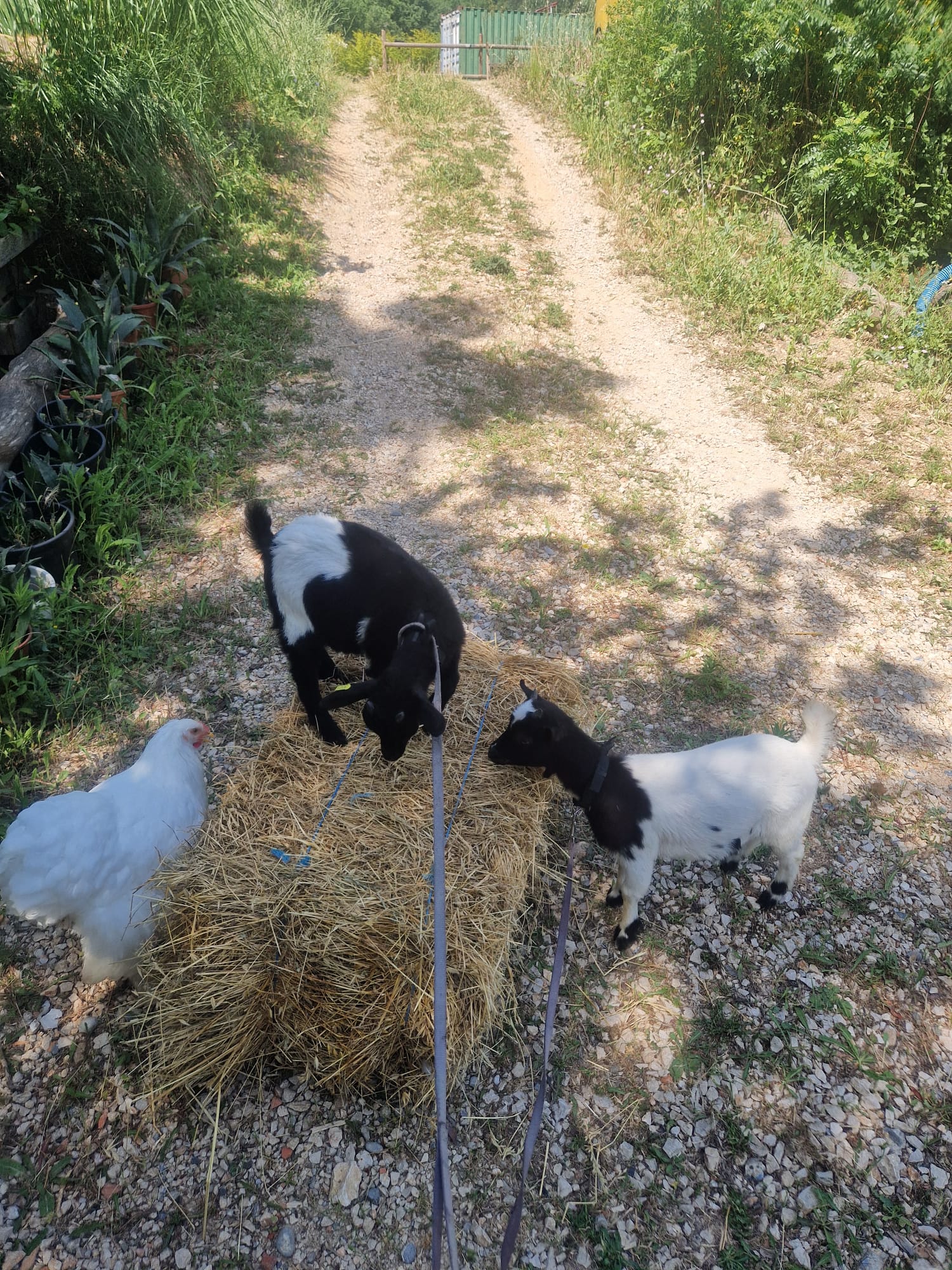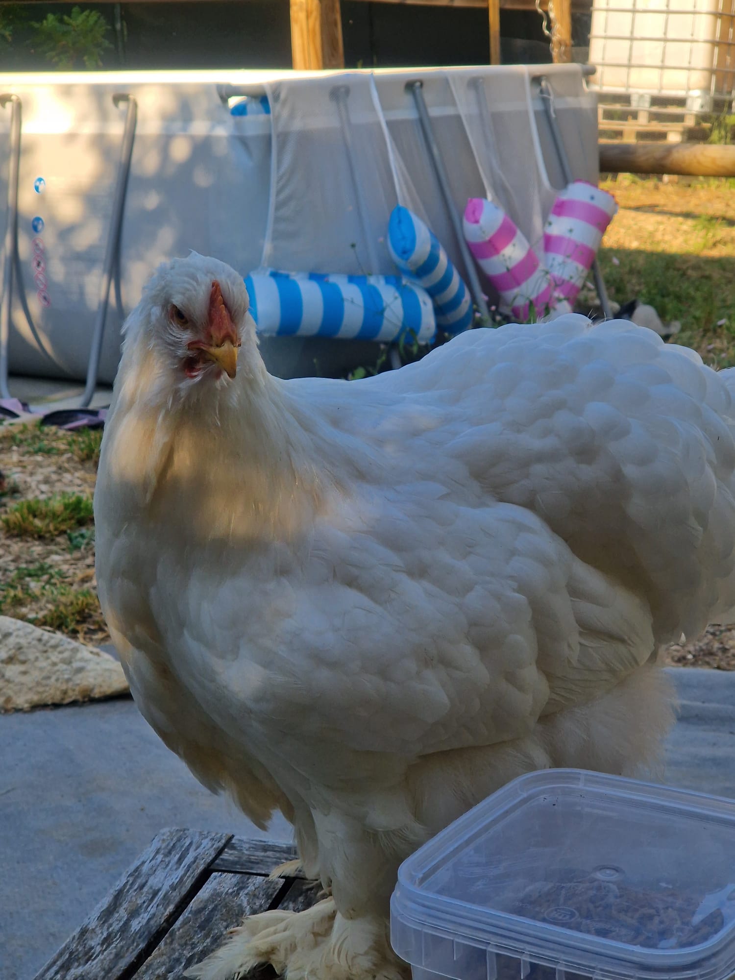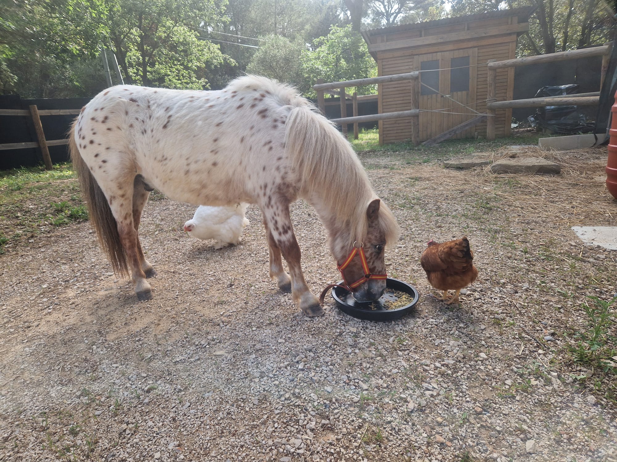 Nos cinq poules, toujours en mouvement, captive les enfants comme les adultes.